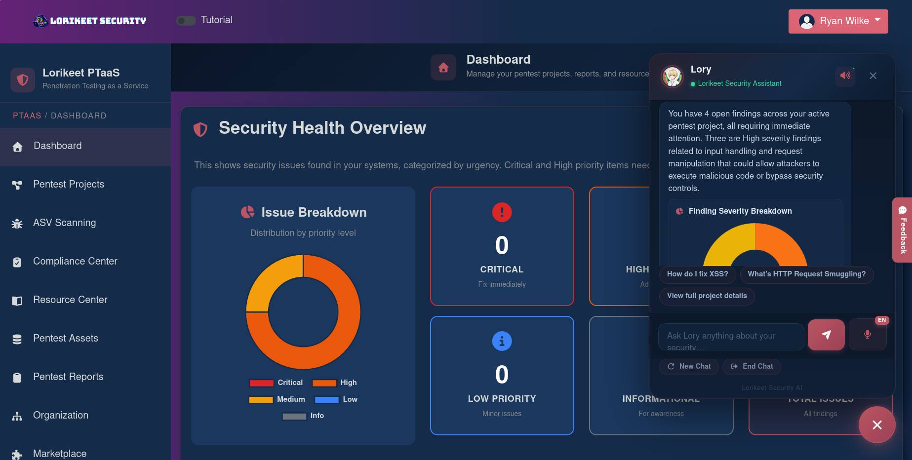 - ->Manual Pentesting: Unlike automated scanners that spit out false positives, Lorikeet’s engagements are 100% manual. You can track the progress of the security researchers live in your portal.